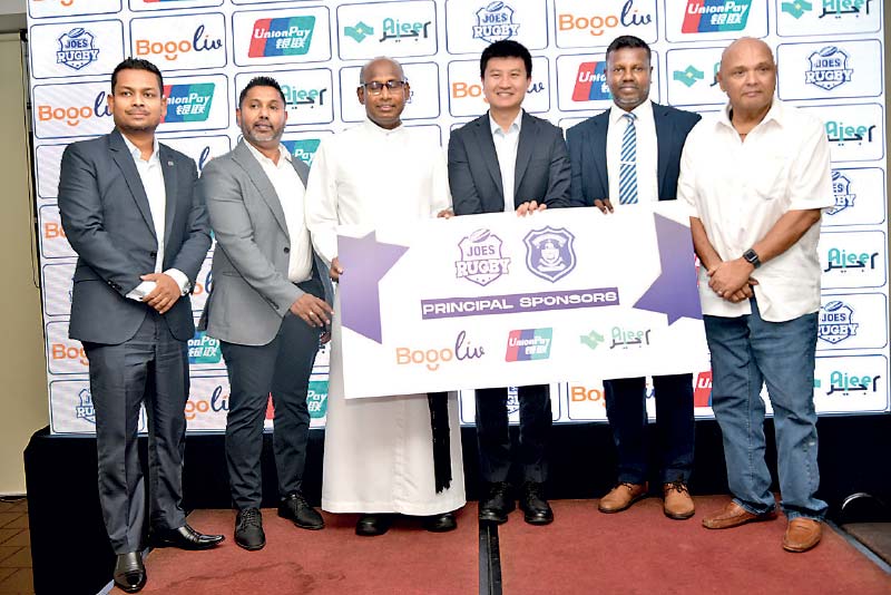 From left: UnionPay International Head of Products and Business Development – Sri Lanka and Maldives Sameera Rowel, Country Manager Sri Lanka and Maldives Crispin Wijesekera, St. Joseph’s College Rector Rev. Fr. Ranjith Andradi, UnionPay International Head of South Asia Hu Binghan, RAC Chairman Dhanushka Jayamaha, and Member of the Hornets Ravi Marcelina – Pic by Shehan Gunasekera