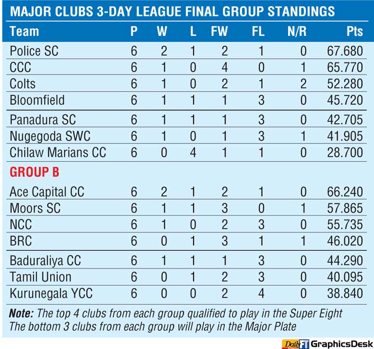 After seven weekends of intense competition the Major Club 3-day League first round group matches have been completed with the top four teams from each of the two groups qualifying to play in the Super 8 and the bottom three teams from the two groups in the Major Plate.