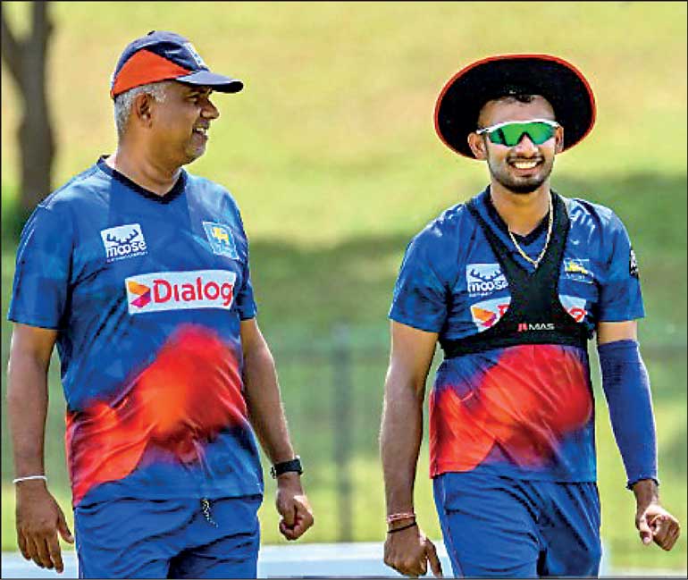 Chief cricket selector Pramodya Wickramasinghe (left) with Sri Lanka T20I Captain Dasun Shanaka
