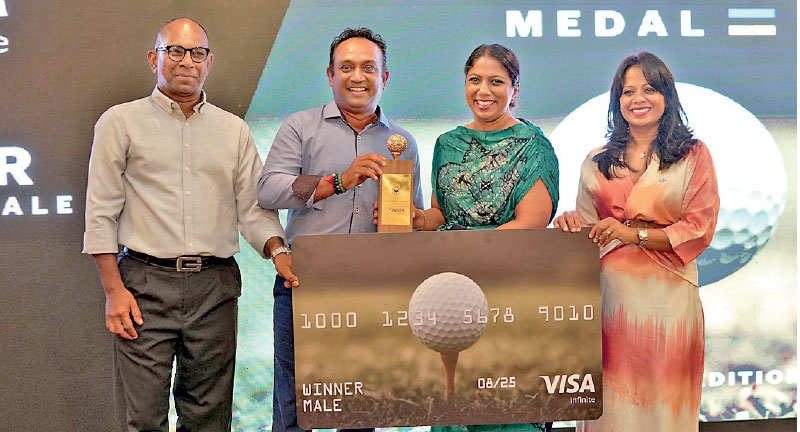 From left: RCGC Captain Gehan Siribaddana, Visa Infinite Monthly Medal 2025 Overall Winner of the Male Category Dr. Pradeep Edward, Visa Country Manager, Sri Lanka and Maldives Avanthi Colombage, and Visa Director – Products and Solutions, Sri Lanka and Maldives Gimali Soysa