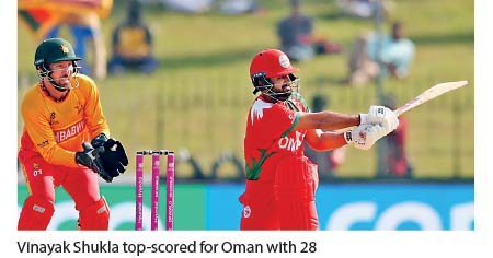 Oman 103 (19.5) (Sufyan Mehmood 25, Vinayak Shukla 28, Nadeem Khan 20, Richard Ngarvara 3/17, Blessing Muzarabani 3/16, Brad Evans 3/18)