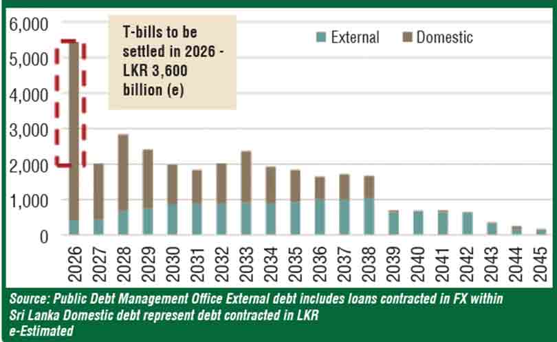 Treasury Bill stocks are estimated at Rs. 3.6 trillion at end 2025 and will come due in 2026.