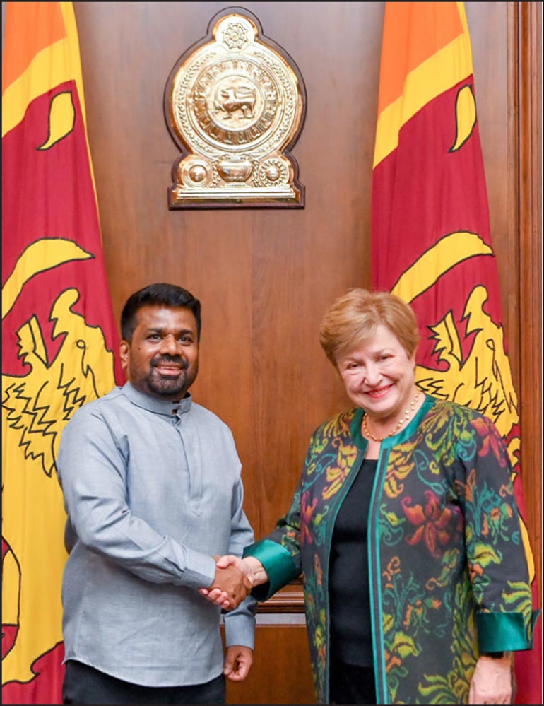 International Monetary Fund Managing Director Kristalina Georgieva yesterday met President Anura Kumara Dissanayake, with discussions focusing on Sri Lanka’s economic recovery, post-disaster assistance and the next phase of the IMF-supported reform program.