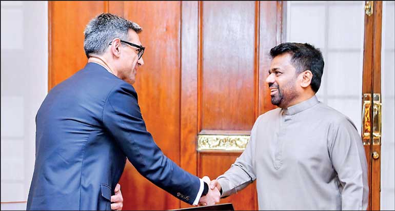 IMF Mission Chief Evan Papageorgiou (left) with President Anura Kumara Dissanayake at the Presidential Secretariat yesterday