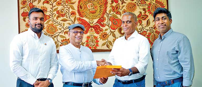 Connaissance de Ceylan Chairman and Managing Director Chandra Wickramasinghe (second from left) hands over a medical insurance policy to a longstanding tour guide