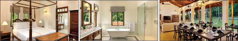 An eclectic blend of vintage architecture and modern comforts, Wahawa Walauwa is an elegant white clad bungalow that sits on a beautifully manicured five acres lawn with a backdrop of towering trees and a pool that beckons. Beyond the foyer and following a traditional ‘meda midula’ sprawls a vast rear verandah that doubles as a sitting and dining area that soothes the eye and calms the spirit with vistas of swaying coconut fronds, and the greenery of the lawn that blends with the azure of the pool and the soaring perimeter trees that guard like sentinels. Wahawa Walauwa features six luxurious and spacious suites – four grand suites and two junior suites. Each suite is a cosy retreat that promises relaxation and indulgence, with four poster beds garbed in crispy white sheets and luxurious pillows, a sitting area and the largest ensuite bathroom ever, made complete with a clawfoot bathtub which will enable a sublime soak creating the perfect end to a busy day trekking or visiting the multitude of nearby historical sites.