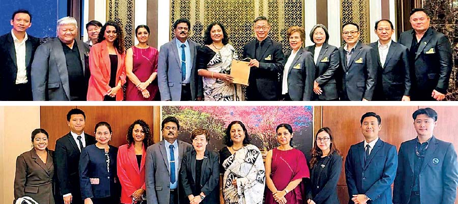 The Embassy of Sri Lanka in Bangkok held two productive meetings with the Tourism Authority of Thailand (TAT) and the Thai Travel Agents Association (TTAA) as part of its ongoing preparations to commemorate the 70th anniversary of the establishment of diplomatic relations between Sri Lanka and Thailand. The visiting delegation from the Ministry of Tourism and Sri Lanka Tourism Promotion Bureau (SLTPB) also joined the meetings.