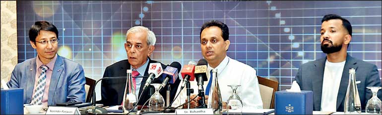 From left: Canon Medical Systems Corporation Global Healthcare IT GM Ravi Shrestha, Global Health Asia-Pacific Founder and Director Narender Panjwani, Global Health Sri Lanka Summit Franchise Partner Dr. Rohantha Athukorala, and Omni Health MD Nuru Baran at the media briefing – Pic by Upul Abayasekara