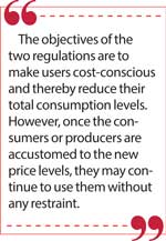 However, in the long run, this policy may bring in new complications too. The objectives of the two regulations are to make users cost-conscious and thereby reduce their total consumption levels. However, once the consumers or producers are accustomed to the new price levels, they may continue to use them without any restraint. This feature is observable when the prices of tobacco or fuel are artificially increased to force consumers to cut down the consumption levels. Immediately, the demand will decline due to the high price effect. But later, when the consumers get used to new prices, they continue to use the same in higher volumes thereby defeating the goal of the authorities.