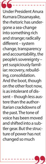 Under President Anura Kumara Dissanayake, the rhetoric has undergone a sea-change into something rich and strange; radically different – system change, transparency and accountability, the people’s sovereignty – yet suspiciously familiar: recovery, rebuilding, consolidation.