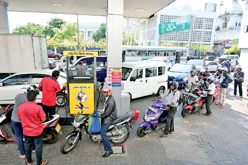 The petroleum factor is the most powerful constraint in the game of oil being played. Motorists in Sri Lanka queuing up for fuel now provided via the QR Code system – Pic by Sameera Wijesinghe